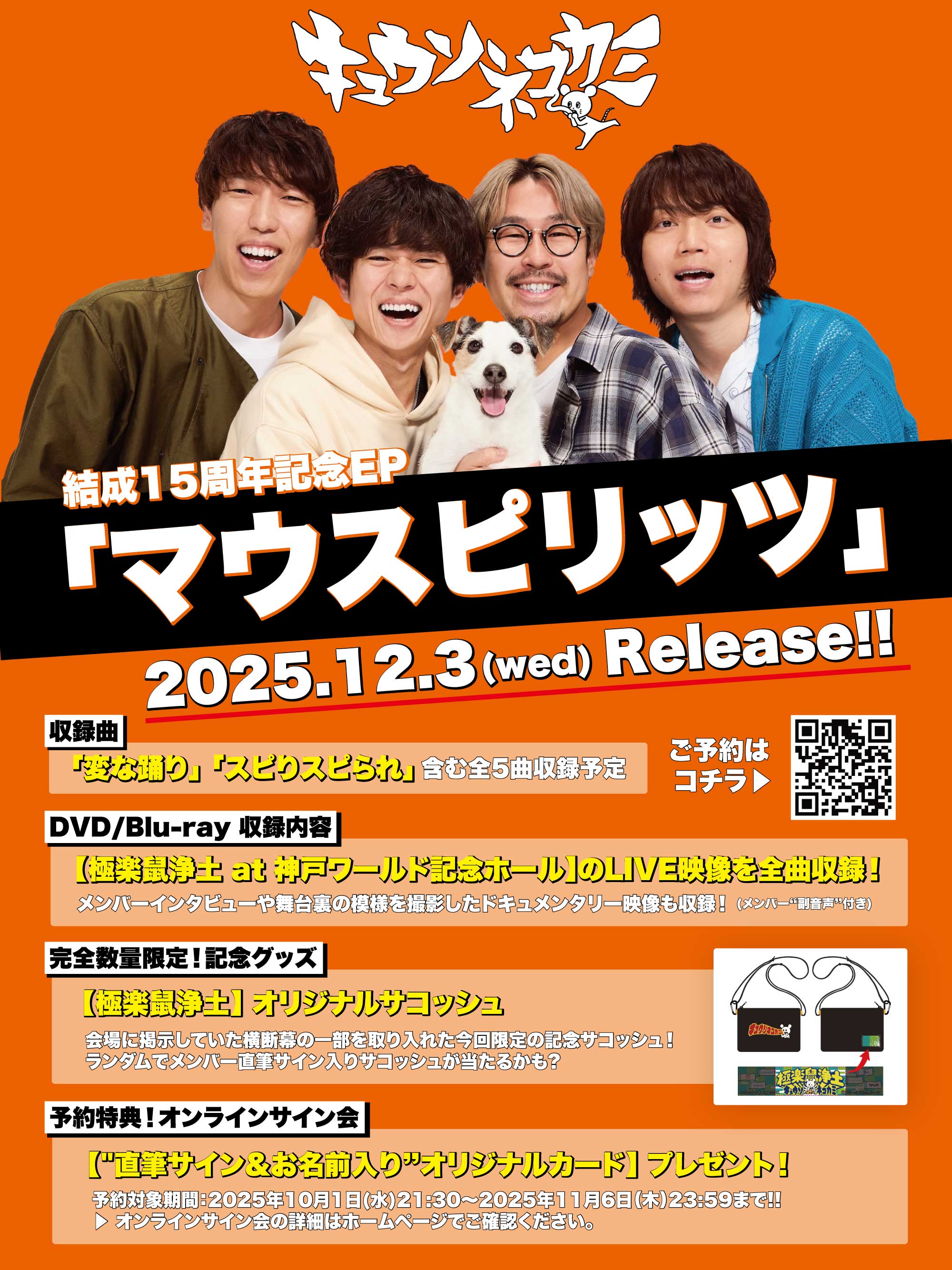 結成15周年記念EP『マウスピリッツ』の発売を記念して、【オンラインサイン会】の開催が決定!
