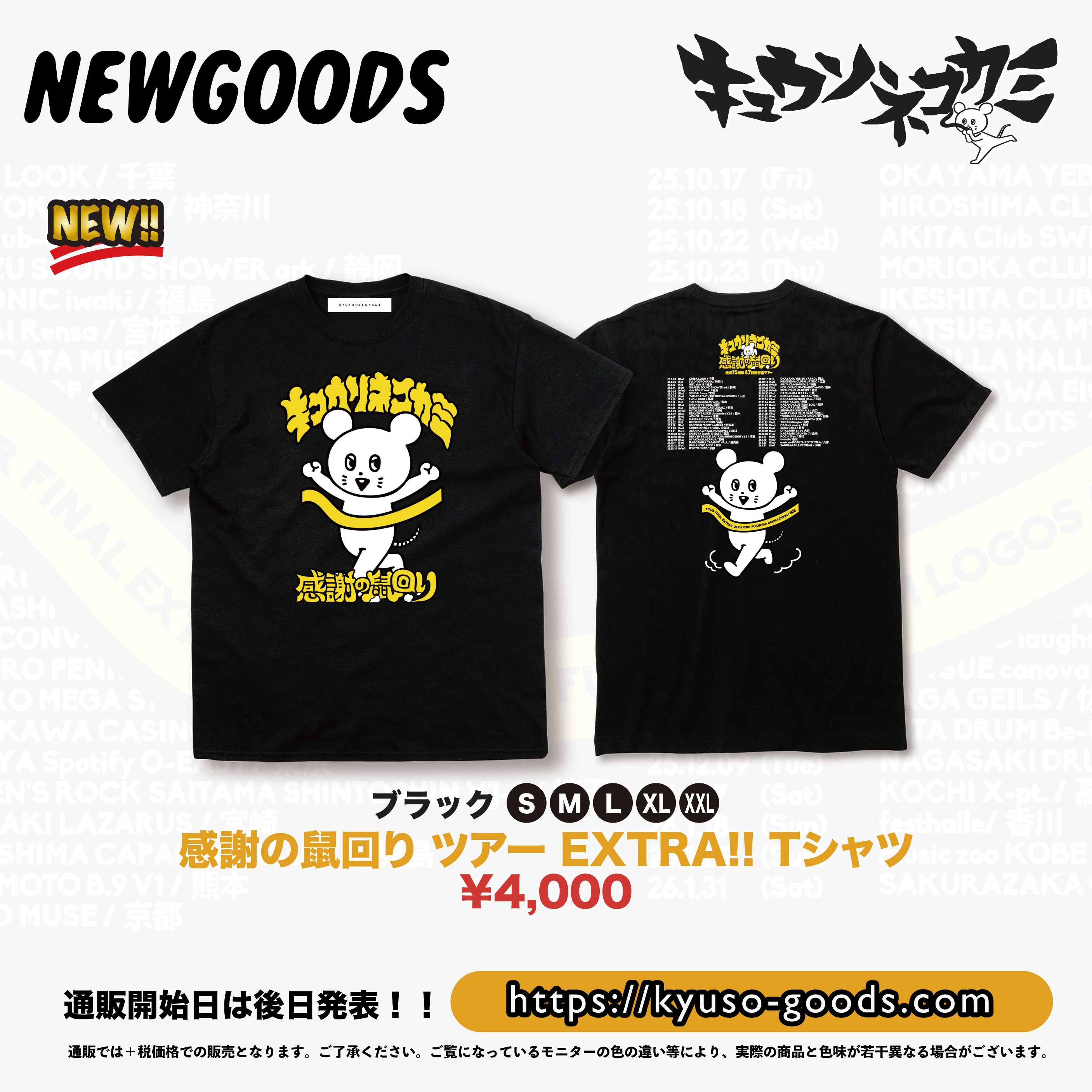 キュウソネコカミ 感謝の鼠回りツアーEXTRA!! Tシャツ販売決定!