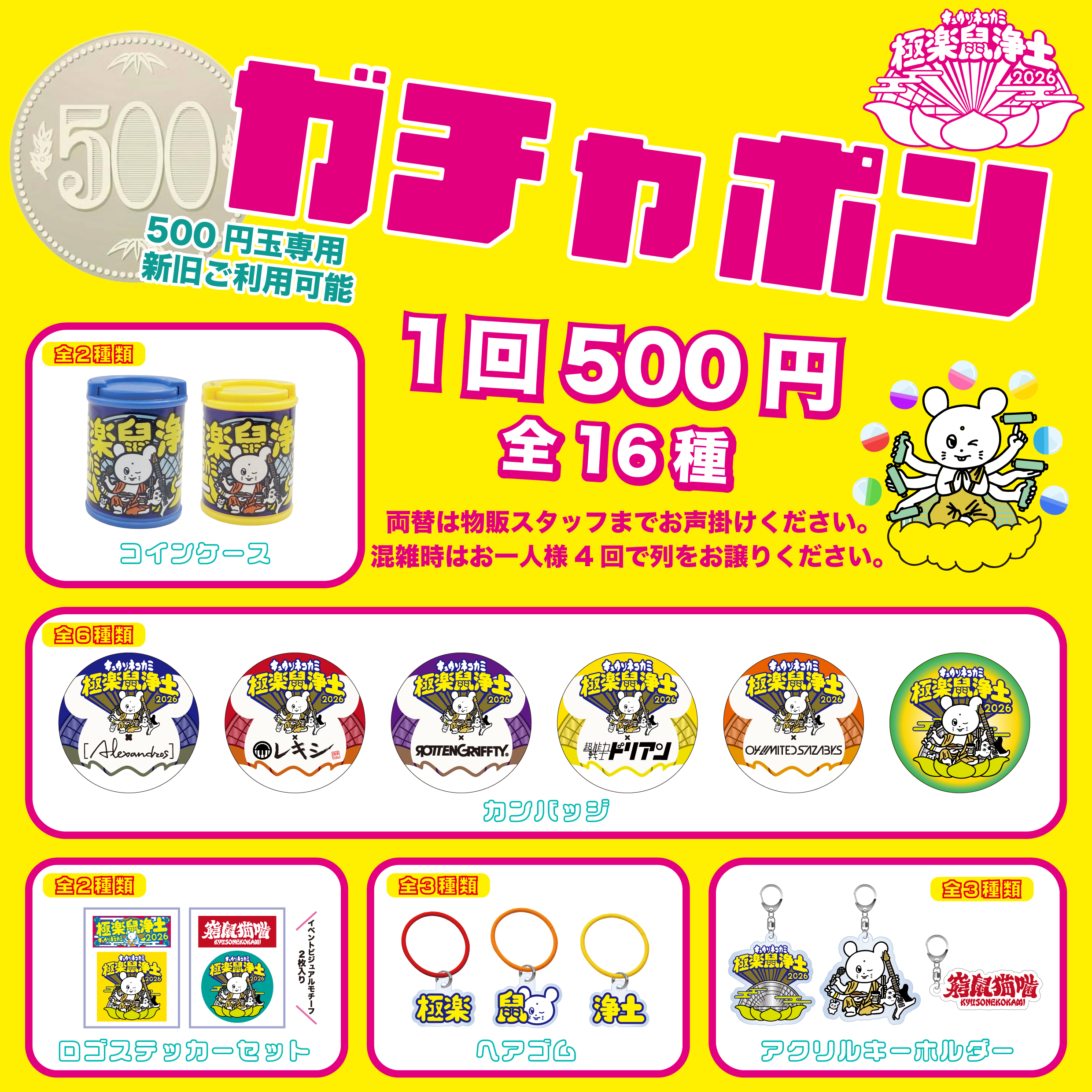 缶バッジ 6種/極楽鼠浄土 コインケース 2種/アクリルキーホルダー 3種/極楽鼠浄土 ロゴステッカー 2枚1セット 2種/ヘアゴム 3種